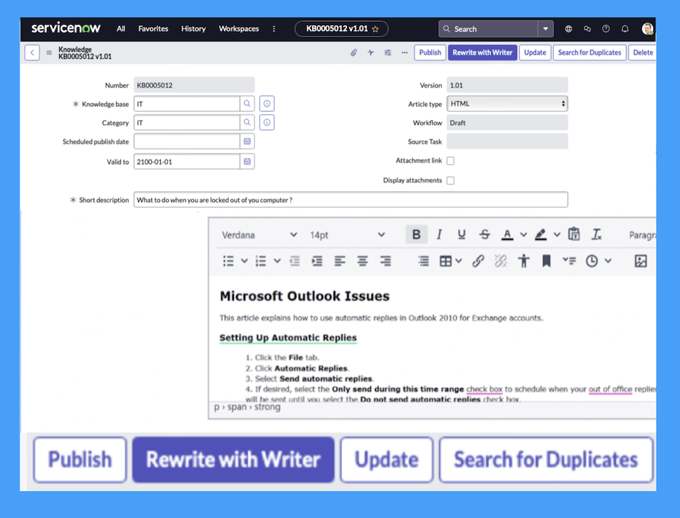 Leverage the magic of WRITER right within ServiceNow Knowledge Management